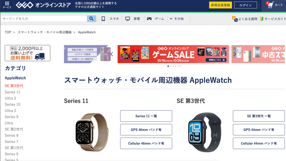 ゲオオンラインストアは、全国展開するゲオグループの中古品販売サイトです。Apple Watchの取り扱いも豊富で、状態の良い商品を見つけることができます。