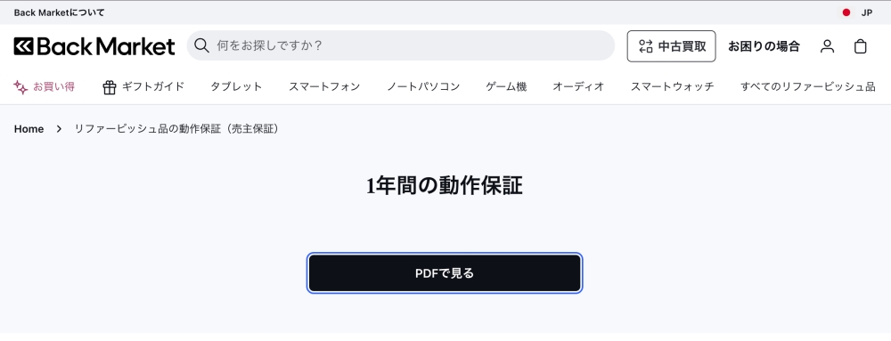 正規サイトには「https://www.backmarket.co.jp/」と表示されています。