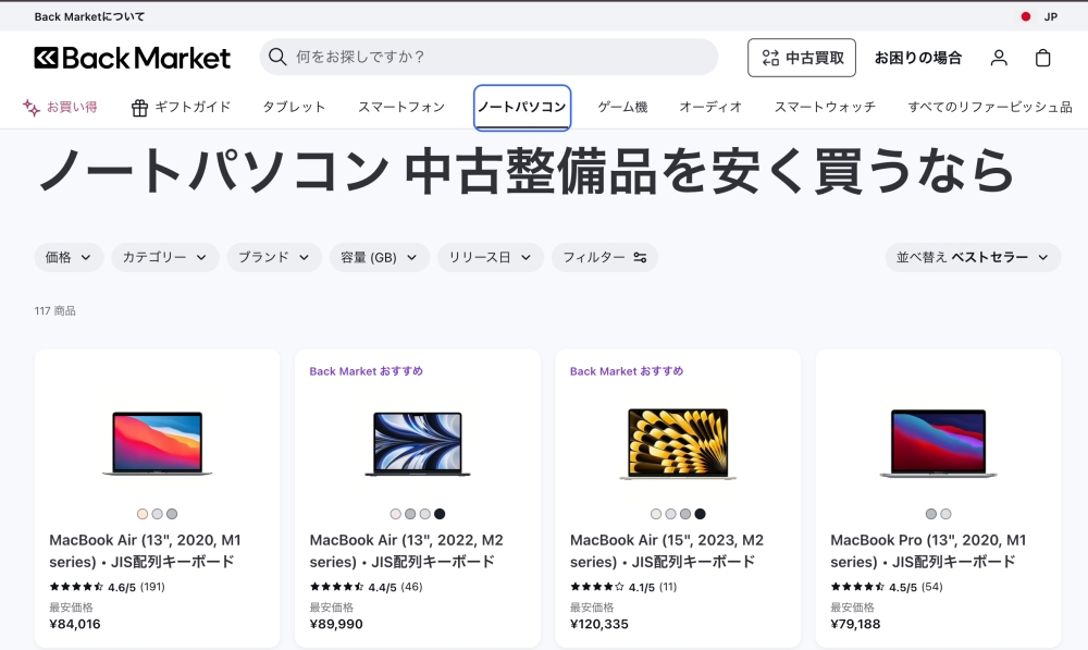 - バックマーケットは保証と価格の両立に優れた中古専門サイト