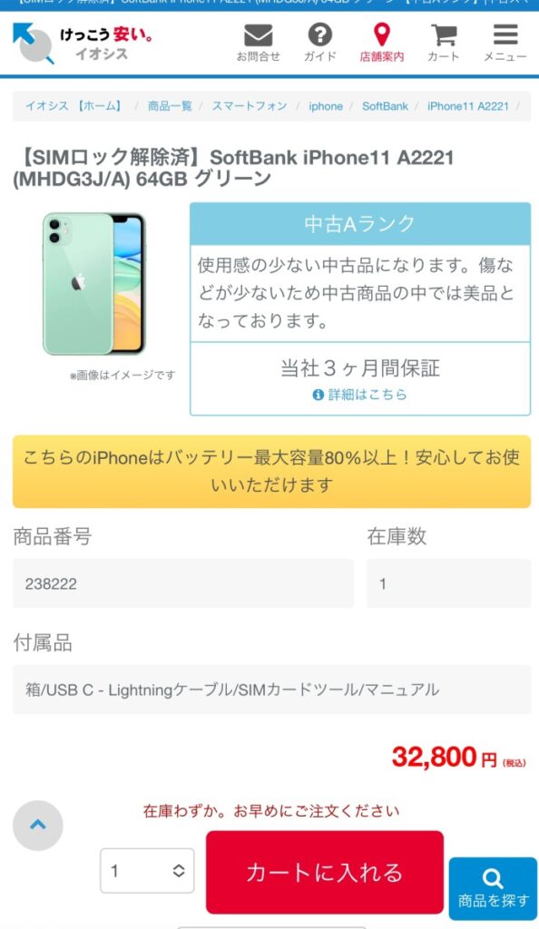 イオシスのサイトは非常に見やすいため、まずはここで相場感を掴みましょう。目的の機種がいくらくらいで売られているのか、在庫はあるのかを確認します。