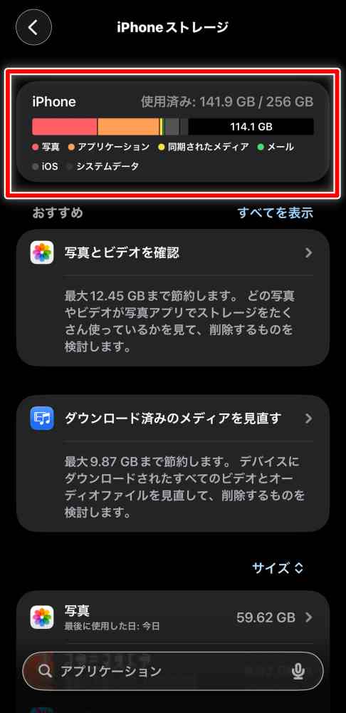 そのため、まずはストレージの使用状況を確認し、不要なデータを削除して空きを増やすのが第一歩です。