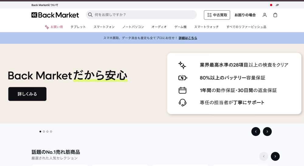 日本にも専用サイト(Back Market Japan)があり、日本語ヘルプと保証ガイドが整備されています。